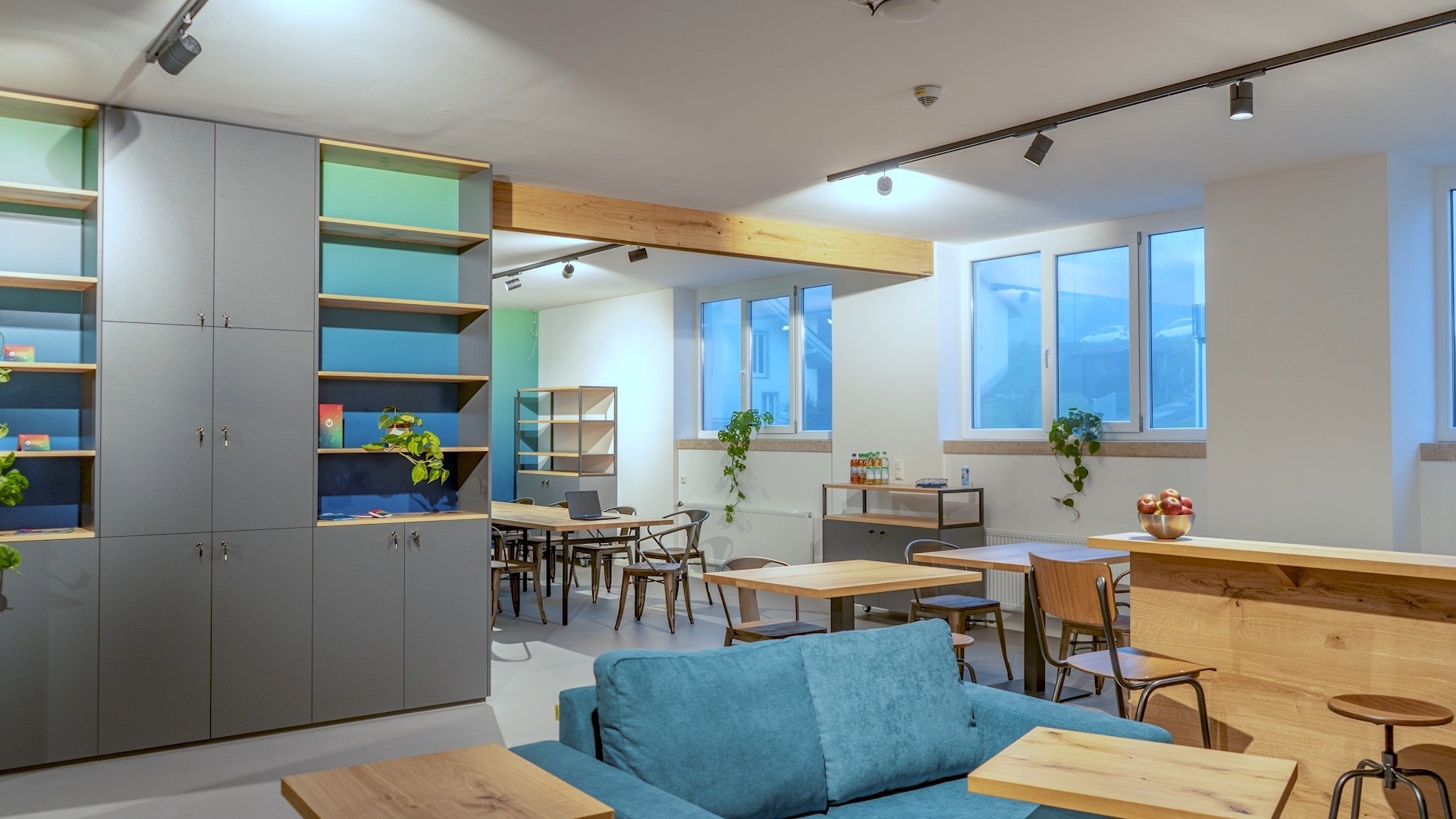 Auf fast 250 m² steht Gründer:innen des Landkreises eine neue Anlaufstelle zur Verfügung. Das Landratsamt Freyung-Grafenau als Träger der Infrastruktur hat in der Innenarchitektin Christina Gotsmich von siimple eine ausgezeichnete kreative Partnerin für die Gestaltung der Räumlichkeiten gefunden. Bei der Vorstandssitzung des GreG Freyung-Grafenau e. V. trafen die helle und offene Raumgestaltung, großzügige Gemeinschaftsflächen und die funktionellen und hochwertigen Arbeitsplätze auf große Begeisterung. Zwölf Arbeitsplätze im CoWorking-Bereich und ein Büro für den Sprung in die regionale Verankerung stehen bereit, Glasfaser-Internet und interaktive Konferenz- und Ton-Technik bieten die ideale digitale Ausstattung für die Umsetzung innovativer Ideen.