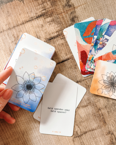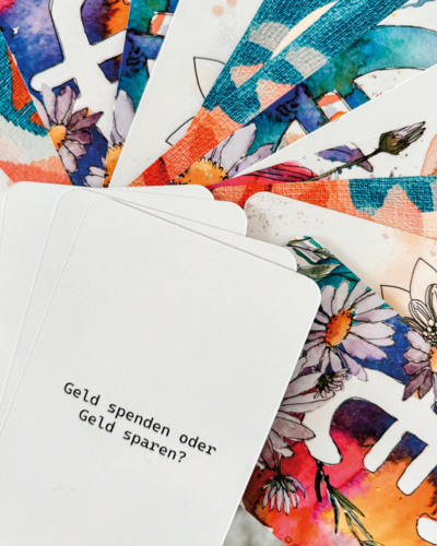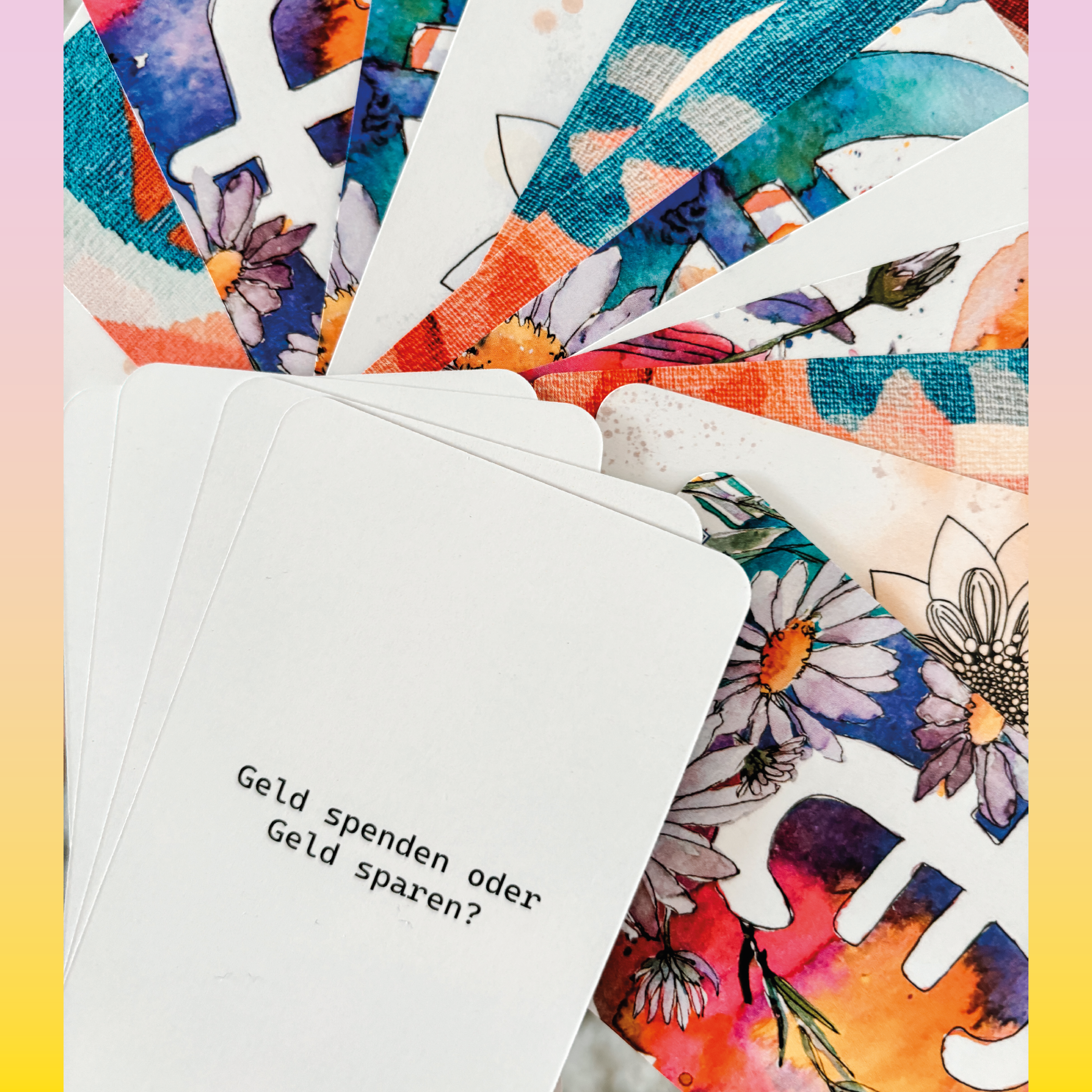 Doch um die müden Köpfe nicht schon vor dem ersten Kaffee mit einem Vortrag über Geld anzustrengen, wählten wir einen kreativen Ansatz, der jede Frau im Raum mitnahm: Fragekarten rund um das Thema Geld und Finanzen, die in kleinen Gruppen besprochen wurden. Schon nach wenigen Minuten war die Atmosphäre voller Offenheit und Vertrauen. Das, was in unserer Gesellschaft oft als Tabuthema gilt – Finanzen – wurde in unseren Gesprächen ganz selbstverständlich zum Mittelpunkt. Das Motto „Über Geld spricht man nicht“ verlor seine Kraft, und es entstand ein Raum, in dem wir unsere Erfahrungen und Herausforderungen frei austauschen konnten. Von persönlichen Investitionsstrategien bis hin zu den täglichen finanziellen: Jede von uns brachte ihre eigenen Geschichten ein. Die Fragekarten führten uns durch Themen wie Glaubenssätze zu Finanzen oder Vorstellungen für die eigene finanzielle Zukunft. Besonders beeindruckend war die Bereitschaft der Frauen, nicht nur über Erfolge, sondern auch über Unsicherheiten zu sprechen – ein echter Gewinn für jede Teilnehmerin. In kleinen Runden entwickelten sich tiefgehende Gespräche, in denen die Teilnehmerinnen ihre persönlichen Tipps und Ratschläge miteinander teilten.