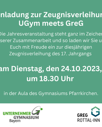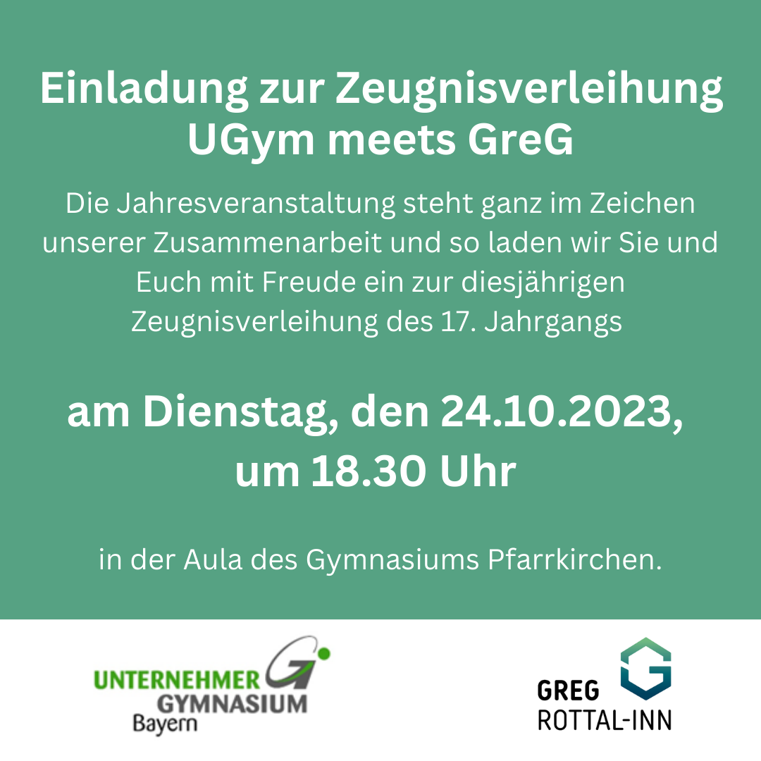 📍 24. OKT🕙 18.30 h | Einladung zur Zeugnisverleihung | UGym meets GreG |