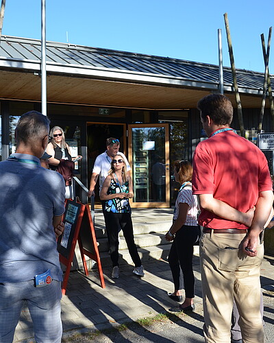 Die Veranstaltung begann in Ering am Inn, wo die Teilnehmer:innen bei einem "walk and talk" durch die malerischen Innauen Gelegenheit hatten, von erfahrenen Expert:innen des Naturiums am Inn mehr über die Veränderungen in der Natur zu erfahren Abbildung 3 Dabei wurden Themen wie der Klimawandel, menschliche Eingriffe in die Natur und weitere Veränderungsprozesse beleuchtet.
