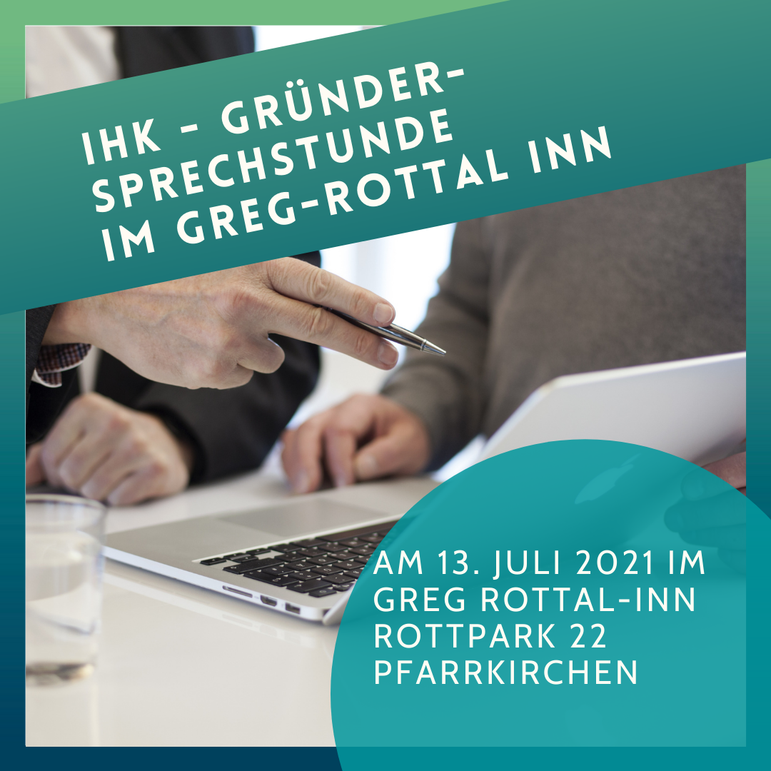Der IHK-Beratungstag findet am 13.07.2021 in den Räumlichkeiten des Digitalen Gründerzentrums, GreG Rottal-Inn, im Rottpark 22 (2. Stock im Ärzteturm) in 84347 Pfarrkirchen, statt. Wir laden alle Interessierte aus der Region recht herzlich dazu ein!