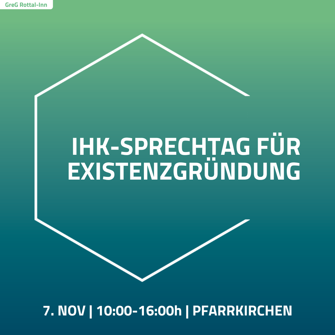 Die IHK-Sprechstunde für Existenzgründung findet am 7. November 2023 bei uns im GreG Rottal-Inn in der Ringstraße 22 statt.