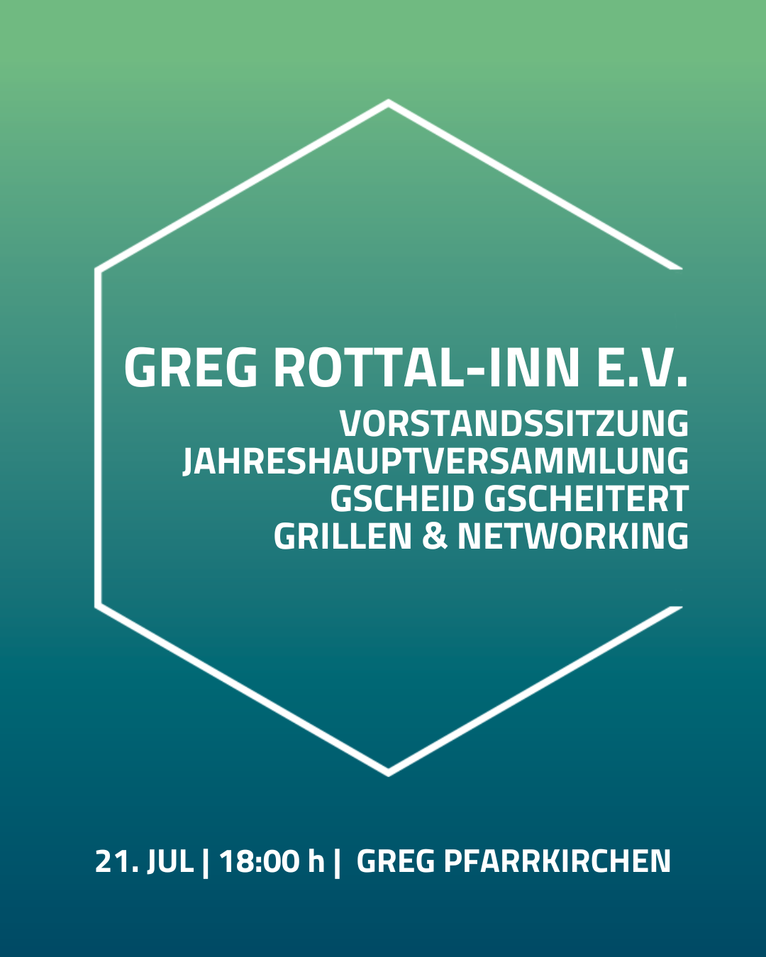 hiermit darf ich Sie im Namen des 1. Vorstands, Landrat Michael Fahmüller, zur diesjährigen Jahreshauptversammlung des GreG Rottal-Inn e.V. einladen. Diese findet statt am Montag, den 21.07.2025 ab 18:00 im 2. OG des GreG Rottal-Inn, Ringstr. 22.
