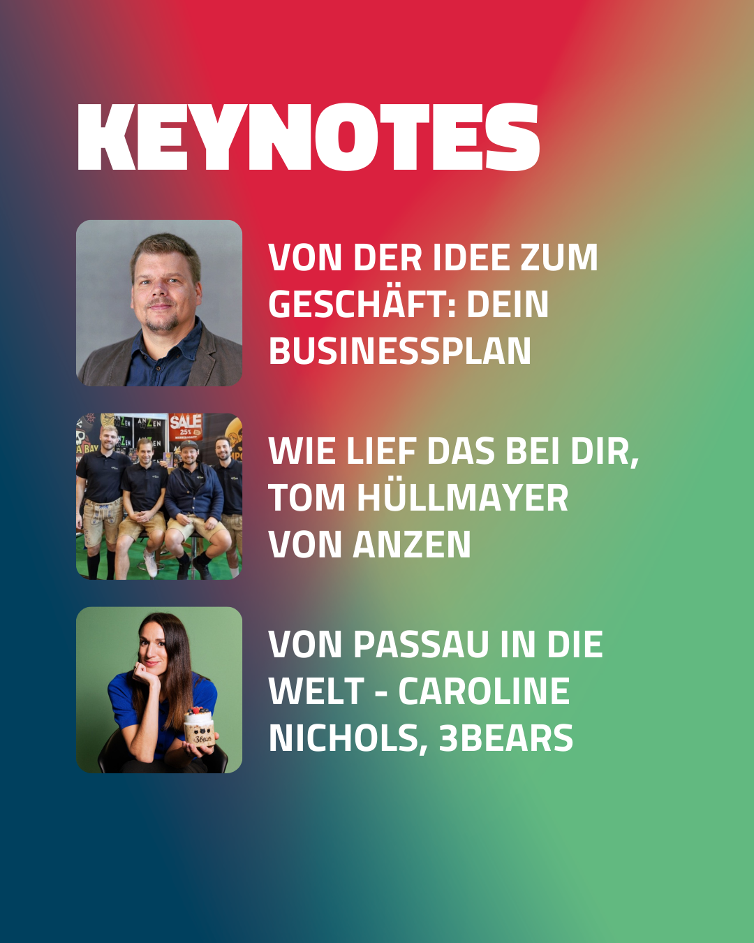 Um Dir möglichst viel an einem Tag zu bieten greifen wir auf unser vielfältiges Netzwerk aus Gründungsexperten und -expertinnen zurück. Mit dabei sind BayStartUp, Hans Lindner Stiftung, IHK Niederbayern u.v.m.