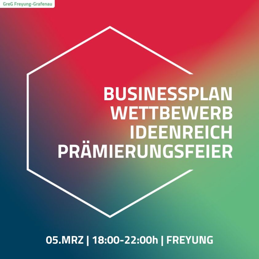 5. MRZ | 18-22 Uhr - Prämierung Businessplan Wettbewerb Ideenreich 2024 im GreG Freyung-Grafenau, Grafenauer Str. 22, 94078 Freyung
